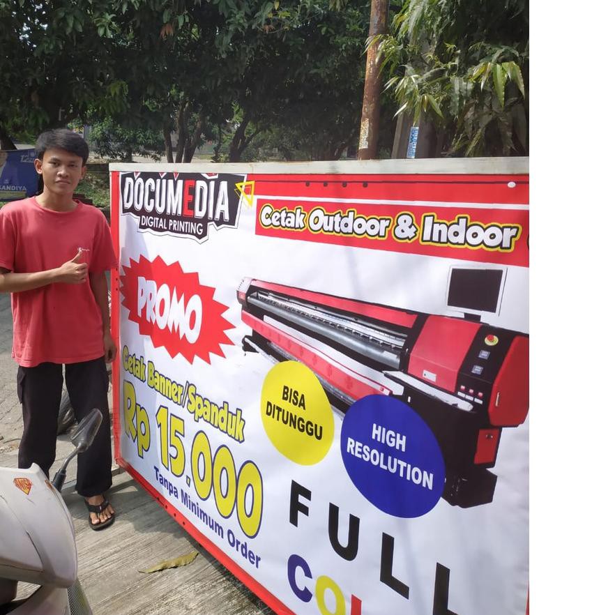 Cetak banner spanduk bahan flexi 280gr perlengkapan kantor.