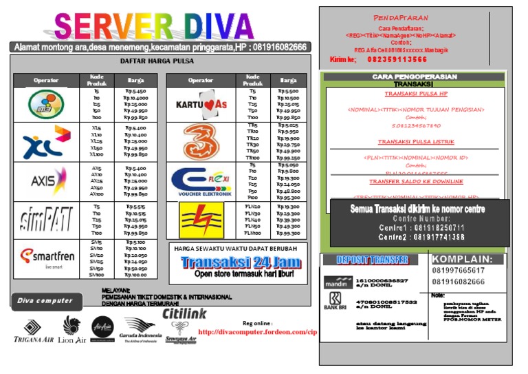 Daftar harga pulsa murah memang paling banyak di cari, untuk yang baru mau mencoba jualan pulsa pasti cari server pulsa yang paling murah, hal ini pun di buktikan dengan pencarian di google dengan kata pulsa murah menembus hingga 5400 pencarian setiap. Berikut adalah contoh spanduk daftar harga pulsa dalam format cdr yang dapat didownload secara gratis dan dapat diedit sesuai. Contoh cv lamaran kerja menarik & kreatif. Download brosur daftar harga & kode produk lengkap excel/xlsx di dompet pulsa berguna untuk promosi bagi master dealer (md) yang menampilkan semua harga lengkap & kode produk untuk transaksi alternatif via telegram.